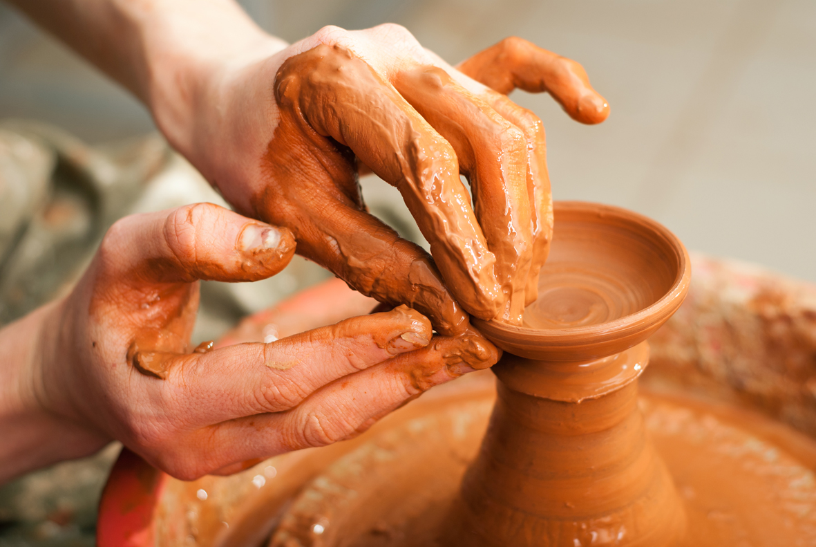 Занятия на гончарном круге, лепка из глины, скульптура. Взрослые